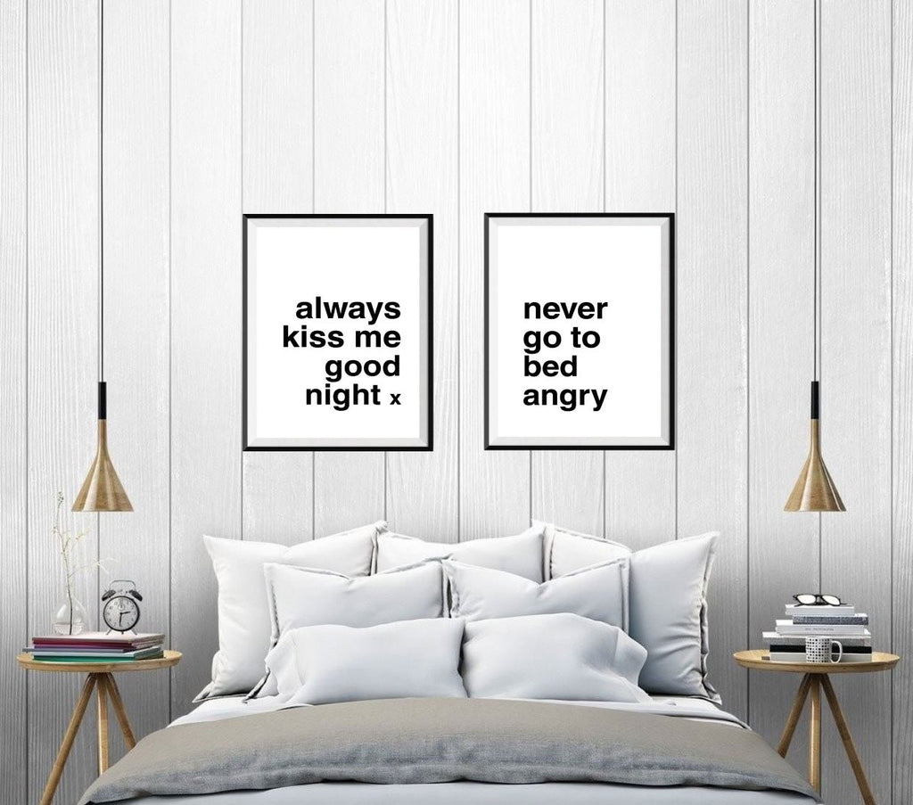Always Kiss Me Good Night / Never Go to Bed Angry Print Set-Art for Interiors-Online Framed-Australian Made Wall Art-Milk n Honey Designs
