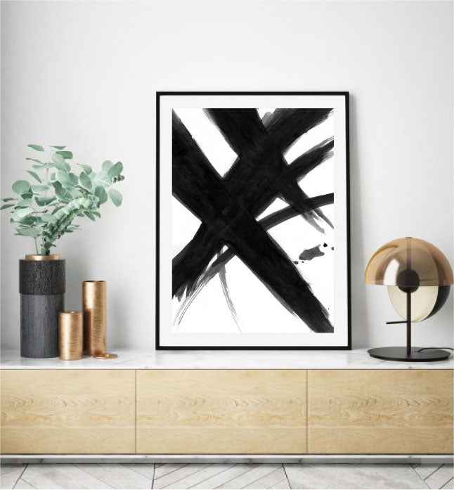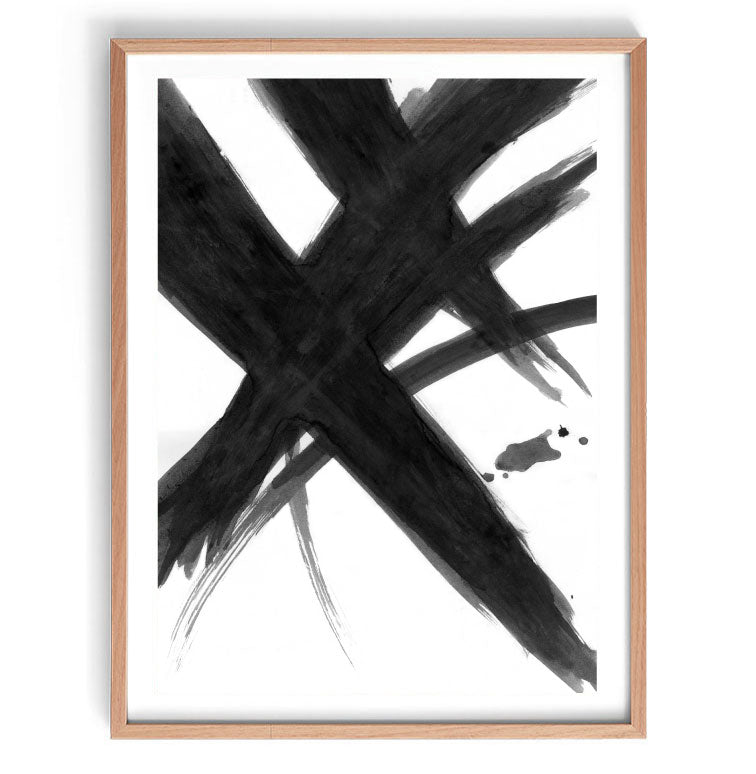 Black Abstract Brush Art Print