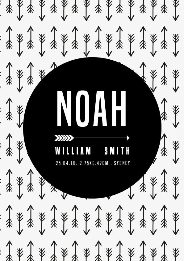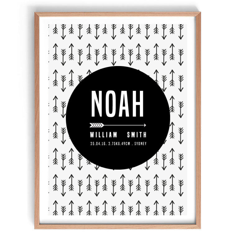 Personalize your child’s room with this custom birth print in an on trend arrow design. It includes your child’s birth details such as name, weight, date of birth and place of birth.