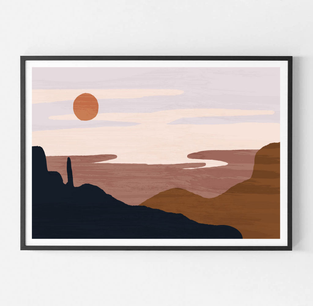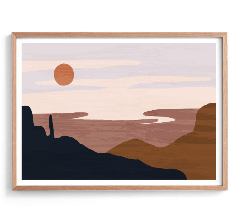 Desert Sun Original Illustration Print-Art for Interiors-Online Framed-Australian Made Wall Art-Milk n Honey Designs