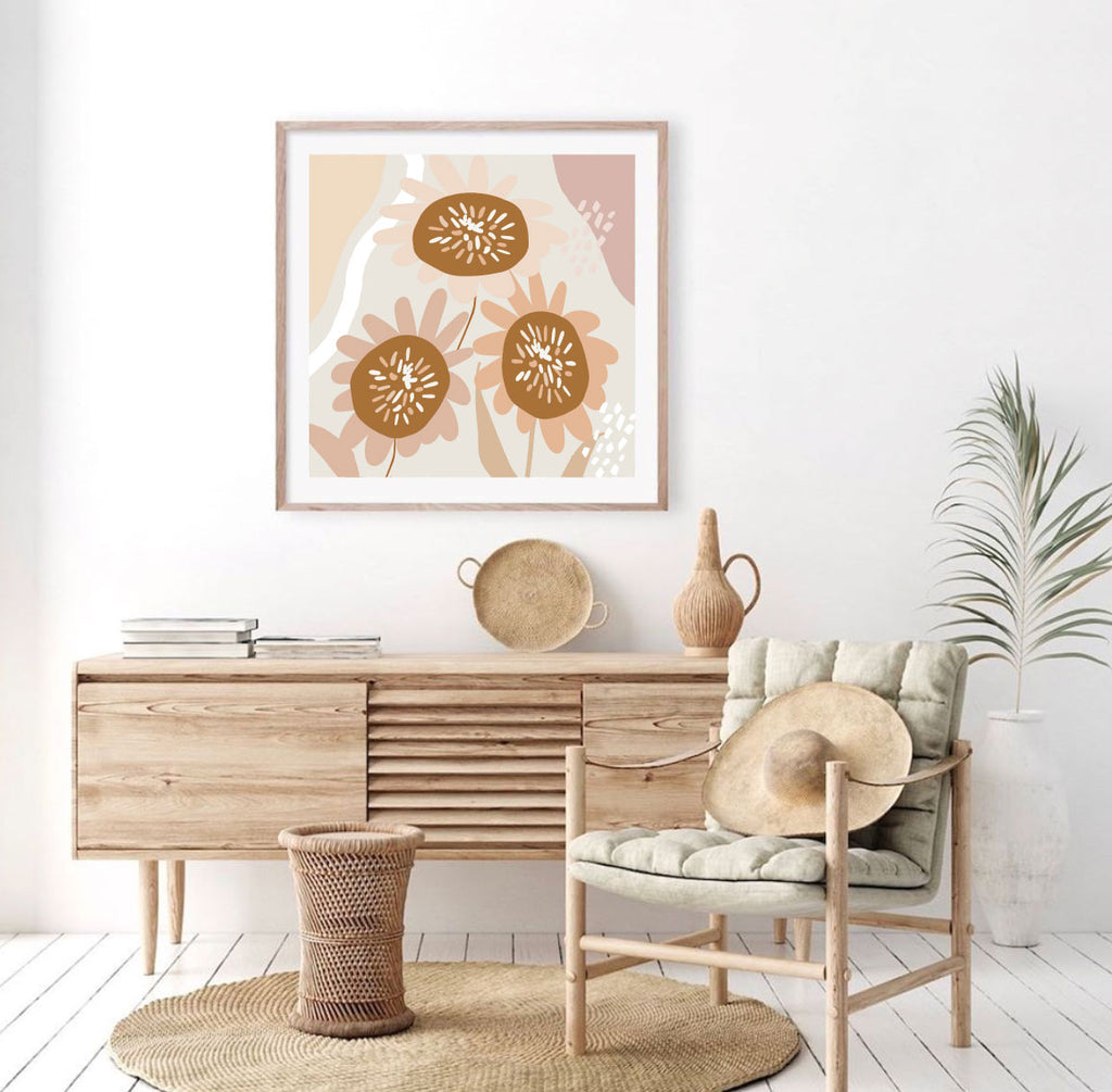 Sunflower Garden Original Illustration Print-Art for Interiors-Online Framed-Australian Made Wall Art-Milk n Honey Designs
