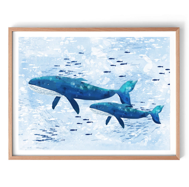 Whale Family Watercolour Nursery Art Print-Prints for - BOYS-Online Framed-Australian Made Wall Art-Milk n Honey Designs